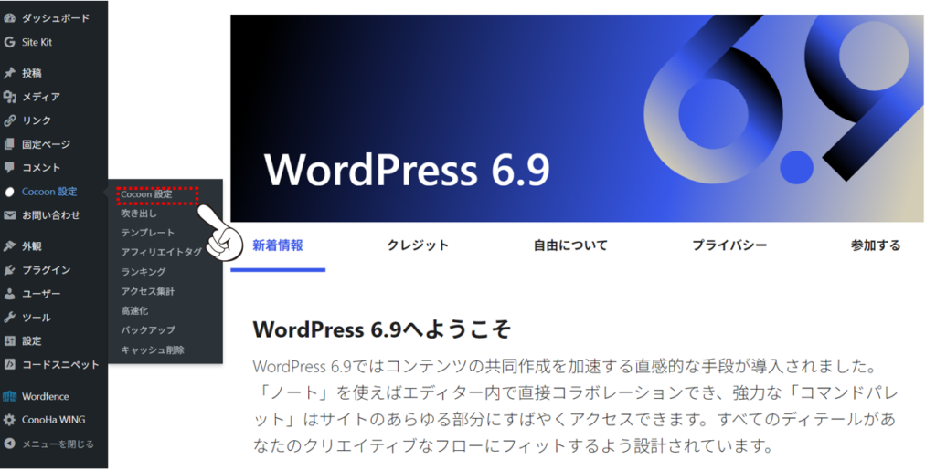 [Cocoon設定]→[目次]