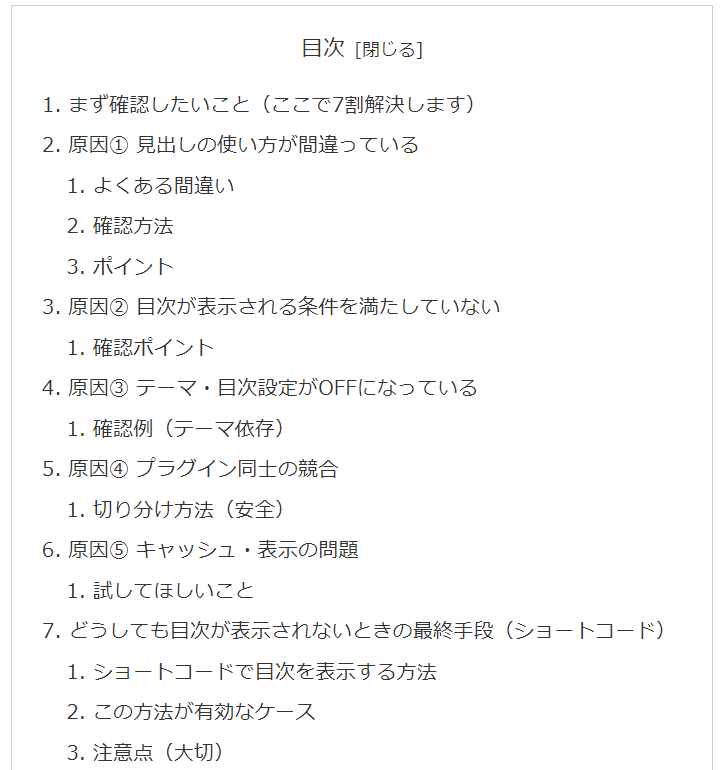 まとめ|目次が表示されない原因は順番に見れば解決できる