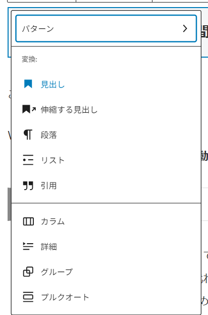 ブロックエディタで次を確認してください。