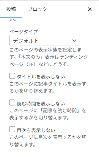 • 投稿ごとに「目次を表示しない」設定がある